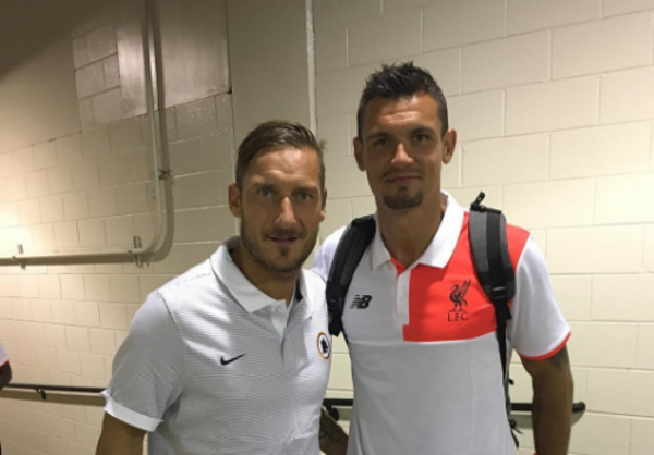 Due giorni fa si è giocata a St. Louis l'amichevole tra Roma e Liverpool, vinta dai giallorossi per 2 a 1 grazie alle reti di Edin Dzeko e Mohamed Salah. Al termine del match il difensore del club inglese Dejan Lovren si è fatto immortalare insieme al capitano della Roma Francesco Totti. E' stato lo stesso centrale del Liverpool a pubblicare la foto sul proprio profilo Instagram.