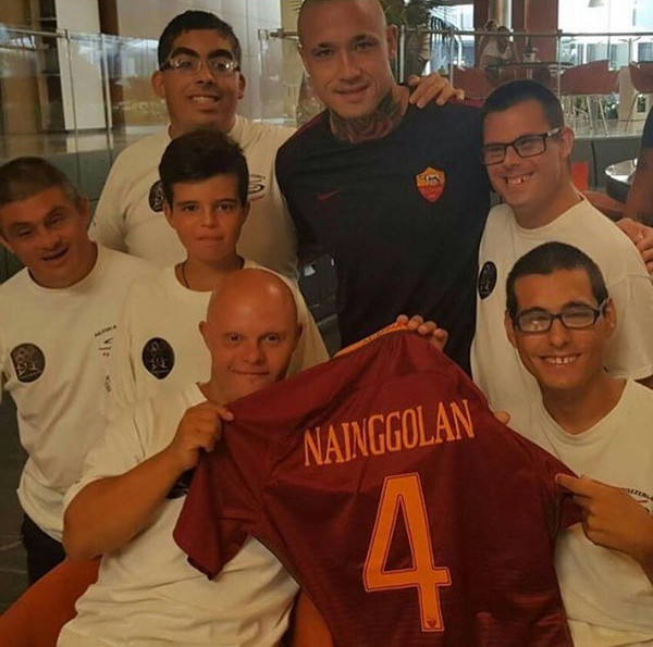 Sul suo profilo Instagram, il centrocampista della Roma e della nazionale belga Radja Nainggolan ha pubblicato una foto che lo ritrae insieme ad alcuni ragazzi che fanno parte della Onlus Olimpia. Insieme all'immagine, anche la didascalia: "Sempre con i miei amici speciali della Onlus Olimpia. Grandi ragazzi..."