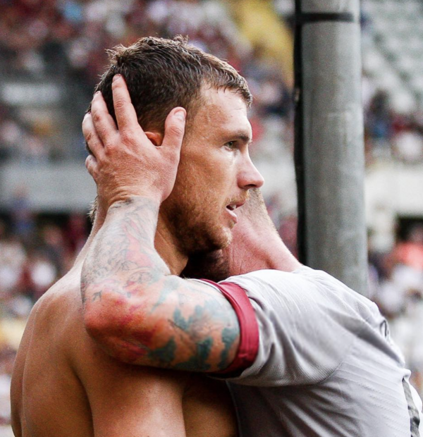 Gol vittoria per Edin Dzeko alla prima stagionale della Roma contro i granata di Mazzarri a Torino. E non passa l'entusiasmo per il 9 giallorosso che ha postato su Instagram un'immagine che lo ritrae dopo lo splendido sinistro messo a segno che ha regalato i 3 punti alla Roma e mentre abbraccia il Capitano, Daniele De Rossi. "Dimmi tutto brate ("fratello")", scrive il bosniaco, messaggio con tanto di emoticon ad accompagnare la foto. Ma non tarda la risposta del Capitano giallorosso che nei commenti all'immagine ha scherzato: "Rimettite la maglia che c'hai il fisico come Manolas!"