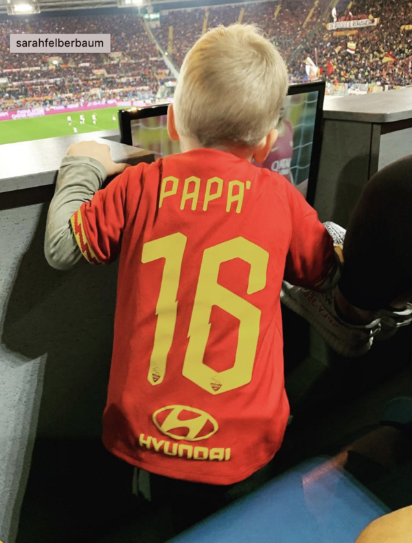 Per l'ultima partita in maglia giallorossa di Daniele De Rossi, sugli spalti c'è tutta la famiglia del numero 16. La moglie del capitano giallorosso, la nota attrice Sarah Felberbaum, ha condiviso su Instagram un dolce scatto del piccolo di casa De Rossi, Noah, con la maglia numero 16 del papà sulle spalle mentre assiste al match. De Rossi è entrato in campo prima del fischio d'inizio con i suoi figli: Gaia, Olivia e proprio Noah.