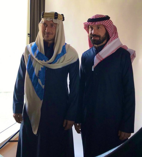 Francesco Totti, dopo essere stato protagonista ieri pomeriggio ai sorteggi di Euro2020 a Bucarest, pescando dalla urna l'Italia inserita nel girone A con Truchia, Svizzera e Galles, è poi partito in Arabia Saudita dove, insieme ad altre leggende come Pirlo, Eto'o e van Persie, parteciperà alla partita di addio al calcio della stella araba Yasser Al-Qahtani. La sfida che vedrà affrontarsi la squadra formata dai campioni locali e internazionali scelti dallo stesso Al-Qahtani e l'Al-Hilal si svolgerà in serata King Fahd International Stadium di Riyadh. Intanto la Roma, attraverso il proprio profilo Twitter in lingua araba, ha postato un video dove si vede Totti e Pirlo che si preparano al match vestiti da sceicchi.