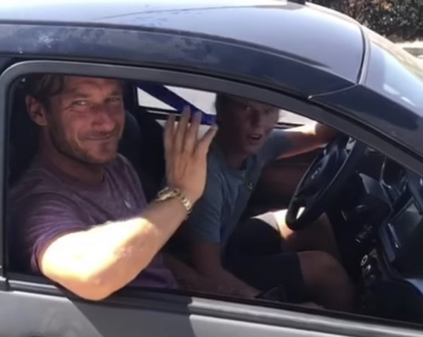 VIDEO - Francesco e Cristian alla guida: Totti dà lezioni al figlio