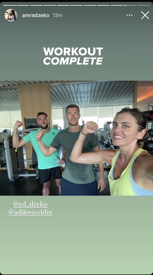 In vacanza ora in Croazia con la famiglia, Edin Dzeko continua ad allenarsi per tenersi in forma in attesa di conoscere il suo futuro alla Roma con José Mourinho in panchina. Su Instagram la moglie Amra mostra con uno scatto, in cui è presente anche l'ex calciatore Eldin Adilovic, l'allenamento concluso.