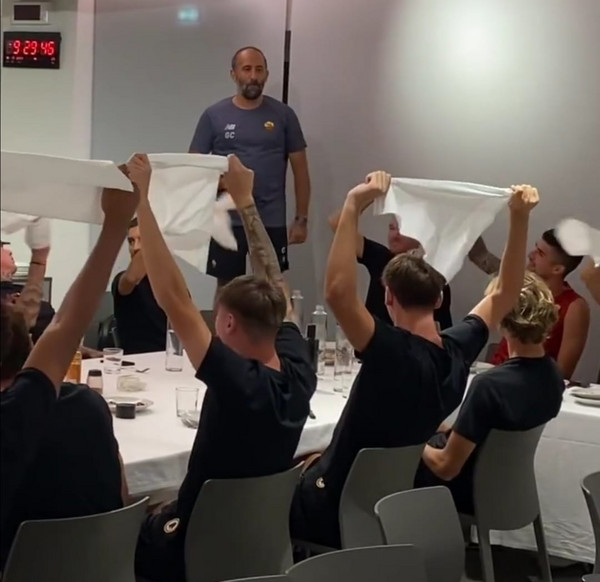 Inizialmente il gruppo è rimasto seduto ma Pellegrini e Dzeko, i primi ad alzarsi, hanno invitato gli altri compagni a seguirli. A filmare il tutto Josè Mourinho che su Instagram ha commentato emozionato a riguardo: "Senza parole".