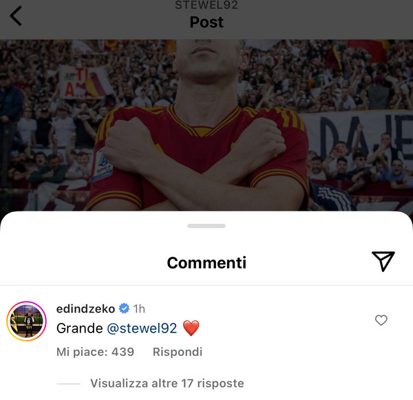 "Grande" con un cuore: è il pensiero che Edin Dzeko, ex attaccante giallorosso e ora al Fenerbahce, dedica a Stephan El Shaarawy commentando su Instagram un post della Roma. Il Faraone, che in settimana è stato tirato in ballo nel caso scommesse senza però essere indagato, è stato protagonista di Roma-Monza, segnando al 90' il gol che vale la vittoria dei giallorossi per 1-0.