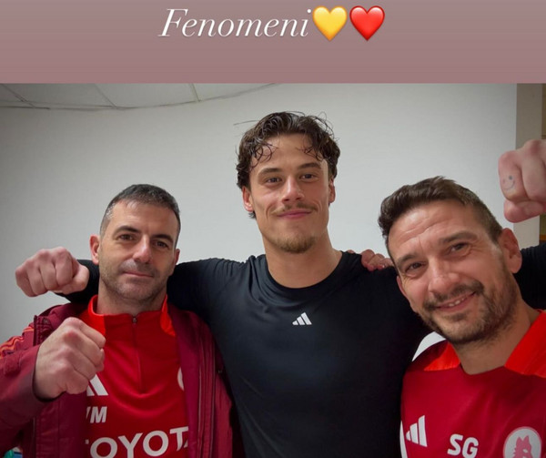 La Roma vince 2-0 il Derby della Capitale e tra i protagonisti della partita c'è sicuramente Mile Svilar, il quale ha ottenuto un clean sheet grazie alle sue grandi parate. Al termine della gara l'estremo difensore ha esultato con lo staff medico e hanno fatto lo stesso anche Alexis Saelemaekers (autore della rete del raddoppio) e Niccolò Pisilli: i tre calciatori hanno pubblicato su Instagram alcune foto con i fisioterapisti e i medici, con il portiere che ha affiancato agli scatti la didascalia "Fenomeni".