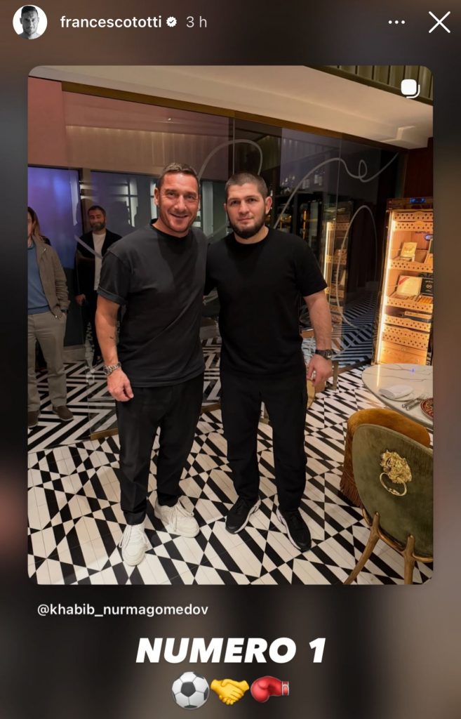 Instagram: l'incontro tra Totti e il lottatore Khabib. L'ex capitano: "Numero uno"