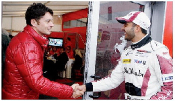 COINCIDENZA - Certo che se fosse tutto affidato al caso, non po trebbe non pesare il fatto che nella stessa corsa dellarabo, quella di macchine, è impegnato Giancarlo Fisichella che, anche in fatto di fede calcistica, non ha bisogno di presenta zioni. Il Fisico ha il cuore giallorosso, da sem pre: «In gara con me larabo che vuole la Ro ma? Non lo sapevo...» . E il rapporto tra i due è tutto in una calorosa stretta di mano, con Al Qubaisi che guarda il Fisichella-pilota con ammirazione e il Fisichella-uomo che ricam bia con gli occhi di chi sembra chiedere un gran futuro per la Roma. Qualcuno prova an che a dare una sciarpa della Roma al giovane membro di Aabar che per qualche istante la tiene in mano ridendo.