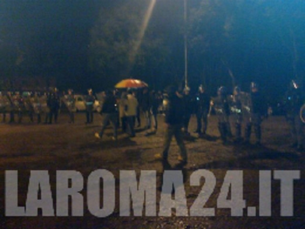 La squadra esce da una uscita secondaria della zona Cargo e fila dritta a Trigoria. Al Fulvio Bernardini, invece, tira tutta un'altra musica. Camionette e blindati di Polizia e Carabinieri dappertutto, quasi un centinaio di tifosi appostati in macchina o sotto gli ombrelli. Prima del pullman arrivano nel fortino trigoriano i giocatori squalificati e il ds Pradè, reduce da Verona, poi alle 21.10 scatta l'ora X: forze dell'ordine in assetto da guerriglia, pullman bersagliato da uova, sassi e bottiglie di vetro con la colonna sonora dei soliti canti da contestazione. Cinque minuti dopo arriva il pullman ragazzi d Montella: l'Aeroplanino non c'è ma è incoronato. La volontà popolare è chiara: questo Golpe s'ha da fare. Intanto per la contestazione di sabato altri tre daspo per tifosi coinvolti negli incidenti.