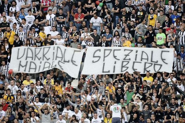IL TEMPO (D. LATAGLIATA) - I soliti intelligenti. Perché, nella giornata in cui la Juve raggiunge i 102 punti battendo il Cagliari 3-0, la festa scudetto viene rovinata dalla curva Sud. La stessa che in stagione era stata squalificata e riempita di bambini. Sugli spalti, intorno al quarto d’ora della ripresa e per un paio di minuti che sono parsi eterni, è infatti comparso lo striscione «Speziale Libero», collegato alla maglia indossata dal tifoso del Napoli «Genny ’a carogna» durante la finale di Coppa Italia Fiorentina-Napoli e inneggiante al tifoso del Catania condannato per la morte dell’ispettore capo di Polizia, Filippo Raciti il 2 febbraio 2007.