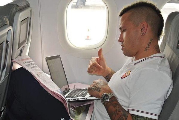 Nainggolan ha il vento in poppa e la sua vita professionale è sbocciata, sia da un punto di vista individuale che collettivo. Tuttavia, questa irresistibile ascesa è segnata da tratti che si trasformano in eccesso. I tatuaggi a bizzeffe e la sua cresta di un gusto particolare fanno ormai parte dei classici del calcio moderno. Difficile invece da ignorare la sua iperattività su Twitter (...) Provocatelo, insultatelo, e lui risponderà. Se scegliere il tema Juve-Roma sarà un gioco da ragazzi. "testa di c....", "vai a f......" o "tifoso di m....". Un'antologia di insulti che però non sembra preoccupare la Roma.