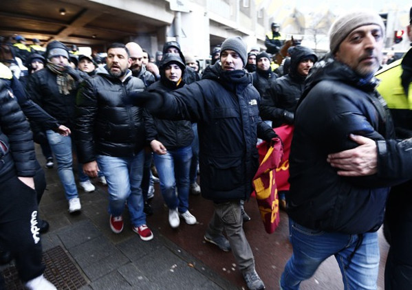 Qui ci controllano in continuazione e a Roma hanno potuto fare quello che hanno voluto», è il pensiero più ricorrente. E, in effetti, è evidente la differenza di trattamento tra l’andata e il ritorno, tra la gestione dell’ordine pubblico in Italia (con questura e prefettura di Roma a giustificarsi: «Non potevamo impedire a dei cittadini comunitari di circolare liberamente per la città») e in Olanda (città praticamente off limits a parte la zona dedicata).