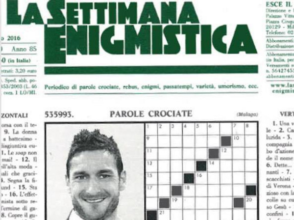 Ennesimo 'tributo' a Francesco Totti. Alla vigilia della sua ultima stagione da calciatore il capitano giallorosso è stato celebrato da 'La Settimana Enigmistica', che ha dedicato al numero 10 la copertina dell'ultimo numero.