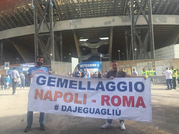Il creatore della pagina Facebook è Domenico Cicalese, un giovane napoletano dotato – bisogna riconoscerlo – di un discreto coraggio: sabato scorso ha cercato di entrare al San Paolo esibendo uno striscione per promuovere il gemellaggio. Ma le autorità hanno vietato l’ingresso dello striscione nello stadio, evidentemente giudicandolo come recitano le disposizioni del Viminale in materia di contenuto «violento, ingiurioso o, comunque, vietato dalle vigenti normative (espressioni di razzismo, di antisemitismo, di vilipendio)». L’idea di Domenico era sicuramente meritoria e intelligente, ma non abbastanza da superare l’ottusità della burocrazia.