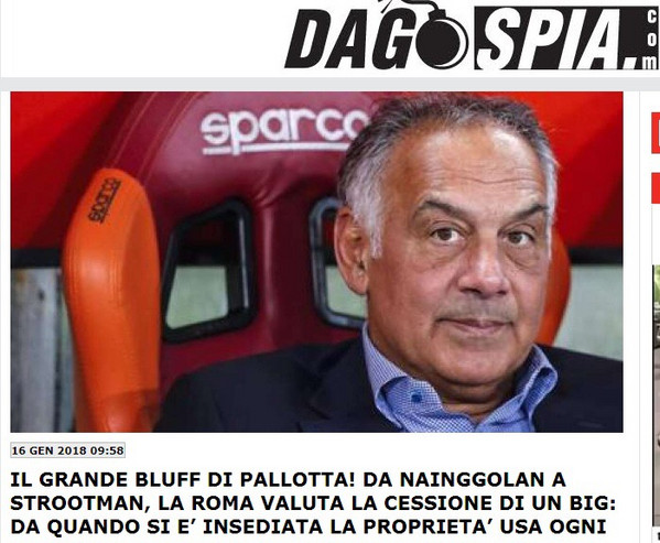 DAGOSPIA.COM - Il portale web attacca il presidente della Roma James Pallotta per la politica adottata sul calciomercato e il rischio di veder sfumare gli obiettivi prefissati a causa dello smantellamento della squadra: