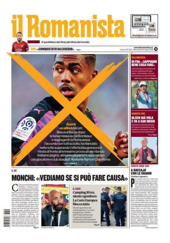 IL ROMANISTA (T. CAGNUCCI) - Per questa cosa no. Visto che pare una necessità e un esercizio intellettuale farlo, la Roma criticatela per altre cose (qualcosetta se trova) ma per la vicenda che ha portato un giocatore di 21 anni di una squadra francese mezz'anonima alla squadra della Catalogna che è stata eliminata dalla Roma in Coppa Campioni, no. [...] Pensa la Roma che è un po' tutto, madre, moje, amante, amica sempre. E qui c'erano parole, strette di mano, telefonate, sorrisi, foto, tweet, post, storie, baci, abbracci, tempo passato insieme, tempo lavorato, telefonate, appuntamenti, fax, aerei prenotati, aerei partiti, visite mediche fissate, ringraziamenti a Dio, ragazzini a Ciampino. Di fronte a chi si rimangia la parola e cancella accordi, di fronte alla facile prepotenza di chi ha potere e soldi ma nessuna eleganza e nessuno stile (basta con la palla di questo "mes que un club", che è vero solo nel senso che di sportivo questa società non ha niente) non si può non stare con la Roma.