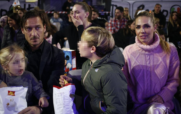 Super fotografato ecco, attesissimo, Francesco Totti, arrivato direttamente dall'ospedale Bambino Gesù, per una visita a sorpresa ai bimbi ricoverati, e dove ha assicurato il suo sostegno per la costruzione di un nuovo ospedale. Con lui, la bellissima Ilary Blasi, con pullover a collo alto e capelli raccolti in una coda di cavallo, con il figlio maggiore Cristian, la sorella Chanel e la piccola di casa, Isabel, accolti dal boato del pubblico che inneggia urlando a squarciagola Viva il capitano. Lui saluta riconoscente per l'ondata di affetto, mentre un team di addetti alla sicurezza lo circonda per evitare che i fan più audaci possano avvicinarlo. Tribune e curve si illuminano con centinaia di flash e l'emozione da stadio si respira in ogni angolo.
