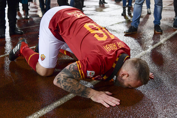 IL ROMANISTA (T. CAGNUCCI) - (...) Totti ha chiuso col sole perché è stato divino e la nostra favola (vero), De Rossi chiude di notte e con la pioggia perché è umano umanissimo me e incarna la nostra vita quotidiana. Ma tu hai sorriso. Alla notte, alla pioggia e alla cattiveria. E non era una smorfia e nemmeno una sfida. È stato il sole a mezzanotte come le nostre notti elettriche di Coppa di una volta. È vero che tu De Rossi sei più la nostra vita che la nostra favola, che tu sei stato carne, fiato e sangue, sei stato chi s'è fatto uomo snobbando l'alto dei cieli perché a quelli preferisci giustamente il tartan sotto la Sud (...).