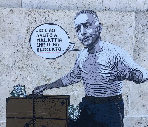 Harry Greb, lo street artist di Montesacro che si nasconde dietro il nome del mitico pugile americano dei primi del Novecento e che sui muri della città racconta gli eventi dell'attualità come l'emergenza Covid il caso George Floyd e la scomparsa di Ennio Morricone, ha salutato a modo suo l'ormai ex presidente giallorosso. Ha disegnato James Pallotta nei panni dell'Americano a Roma Nando Mericoni che con una valigia piena di dollari (con l'effigie di Topolino) lascia la città per tornare a Boston dicendo nel fumetto: «Io c'ho avuto a malattia che m'ha bloccato», parafrasando l'immortale battuta di Alberto Sordi. Il murale è apparso a Ponte Duca D'Aosta, proprio di fronte allo Stadio Olimpico e l'aver preso in prestito il capolavoro di Albertone è un modo palese per rinfacciare a Pallotta il suo non essersi mai voluto far contagiare veramente dalla romanità, l'averla tenuta sempre a distanza quasi temendola.