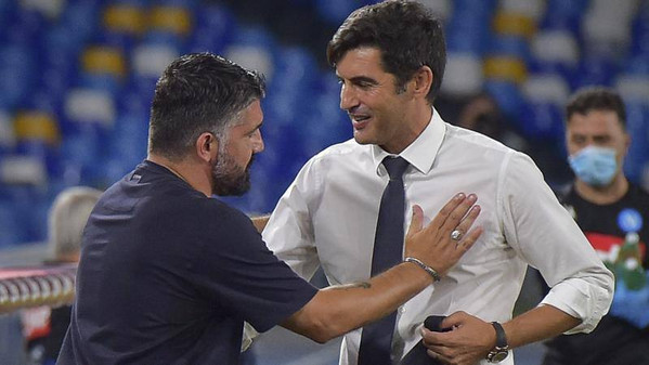 Sono tante le differenze tra Rino Gattuso e Paulo Fonseca. I due però si ritrovano in una filosofia comune: un calcio piacevole, possibilmente vincente. Al San Paolo la squadra di Fonseca ha perso per l'ultima volta, era lo scorso 5 luglio, quella sera il tecnico portoghese aveva deciso di cambiare volto alla squadra, passando dalla difesa a quattro a quella a tre-cinque, la Roma da quella volta ha cambiato volto. Anche a Gattuso, che gioca tre attaccanti e un centrocampo di qualità, come aFonseca, piace il calcio visionario. Poi li guardi e davanti hai due persone opposte: Paulo sussurra, Rino urla.