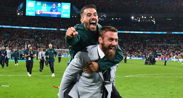 Non potrà essere all'Olimpico per «motivi personali», tiferà come a Wembley, sicuro: al Mondiale vuole esserci. Ieri Daniele De Rossi è passato a trovare gli azzurri al Parco dei Principi. È stato assistente di Mancini all'ultimo Europeo e tornerà presto in azzurro per svolgere il tirocinio prima di sostenere l'esame per il patentino Uefa Pro: avrà un incarico nelle nazionali giovanili. E stasera intanto, come sempre, tiferà Italia. Lo faranno da vicino invece tutti quelli che la nazionale l'hanno dovuta lasciare per infortunio: Lorenzo Pellegrini (passato ieri a salutare i compagni al Parco dei Principi), Giorgio Chiellini e Ciro Immobile. Non ci sarà Nicolò Zaniolo.