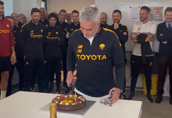IL TEMPO - Un compleanno sobrio con la testa al campionato. Si potrebbe riassumere così la festa che si è tenuta ieri mattina a Trigoria per i 60 anni di José Mourinho. Il tecnico portoghese, che al suo primo anno in giallorosso ha portato il club a vincere la prima competizione UEFA della sua storia, superando le 1000 panchine proprio nella Capitale e diventando l’allenatore con più vittorie in Europa, è stato festeggiato da tutto lo staff e dai calciatori nello spogliatoio del Fulvio Bernardini prima di scendere in campo per l’allenamento programmato in vista della sfida col Napoli. Il tecnico portoghese è stato accolto tra gli applausi, una bottiglia di champagne e una torta raffigurante proprio lo Special One a Tirana con la Conference League, lo stesso trofeo che l’ha fatto diventare l’unico allenatore nella storia a vincere tutte e tre le competizione europee per club - come sottolineato dalla UEFA nel messaggio d’auguri indirizzato al portoghese tramite i social network. Inizialmente Mourinho aveva intenzione di terminare velocemente la festa, esortando i calciatori a dirigersi verso i campi di allenamento per svolgere la seduta in programma: «Andiamo, andiamo!». Convinto sia da calciatori sia dai collaboratori, si è diretto verso la torta e, dopo aver tagliato la prima fetta nel silenzio più assoluto, l’ha consegnata a Lorenzo Pellegrini, un gesto tanto semplice quanto simbolico verso il capitano giallorosso. Dopo un breve applauso, al quale hanno partecipato anche Zaniolo - che sedeva accanto al numero sette - e Karsdorp, il tecnico ha preferito non rilasciare il discorso di rito, concludendo così i festeggiamenti e riportando l’attenzione alla delicata trasferta al Diego Armando Maradona: «Ma che discorso, andiamo a lavorare che domenica c’è la partita dai».