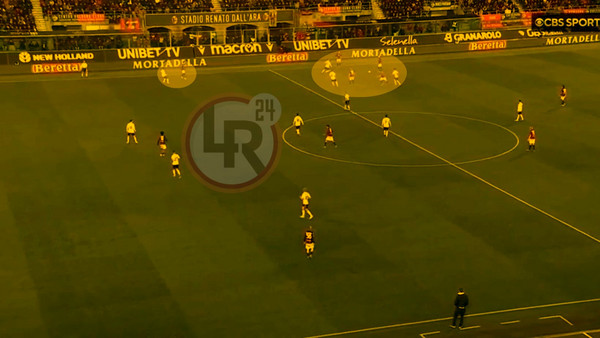 Il tema è rimarcato nel 2-0, con la costruzione del Bologna che da Ravaglia va direttamente sui piedi di Posch, chiamando a sé, ancora, l'uscita del quinto, che tra un tempo e l'altro è diventato El Shaarawy. Immediato lo smarcamento alle spalle dell'arrivo del 92 romanista che non sarà neanche necessario ai rossoblu per avanzare, potendo sfruttare ancora la frattura nell'interpretazione della pressione dei giocatori della Roma.