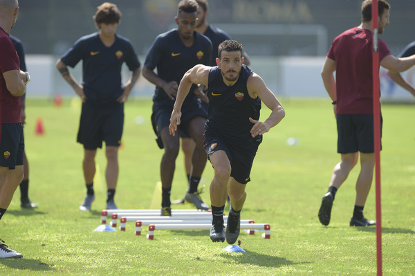10.00 - Prima parte dedicata al riscaldamento ma già da subito si è notata un'intensità particolarmente elevata. A seguire circuito d'attivazione con esercizi di rapidità e cambi di direzione tra le aste. Successivamente la squadra è stata divisa in 3 gruppi per svolgere il torello già visto ieri, con 2 giocatori come avversari. Durante il collegamento dell'emittente televisiva giallorossa si sentono in sottofondo le urla dello staff per alzare il ritmo del lavoro. Il ds Petrachi assiste alla seduta direttamente dal campo.