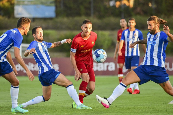 Primo esame di lusso per la Roma di Mourinho. Dopo i test con Montecatini, Ternana e Debrecen, i giallorossi sfidano il Porto nella prima amichevole del ritiro portoghese in Algarve. Finisce 1-1: la Roma sblocca il match a inizio ripresa con Mancini, a 2' dallo scadere il pari firmato da Vitinha.