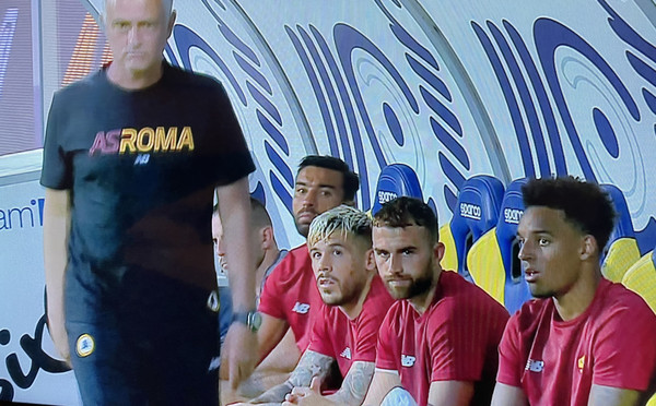FOTO - Roma-Debrecen: indicazioni di Mourinho a Mayoral in panchina nel secondo tempo