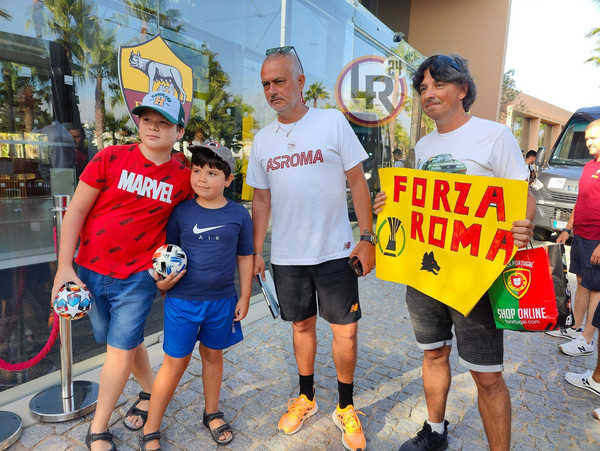 10.00 - I giocatori sono diretti al campo per la seduta di allenamento mattutina e come di consueto, anche oggi alcuni tifosi si sono riuniti fuori al resort in cui alloggia la Roma per rubare qualche scatto, come questa famiglia che ha approfittato, ed è riuscita a fare una foto proprio con il mister.