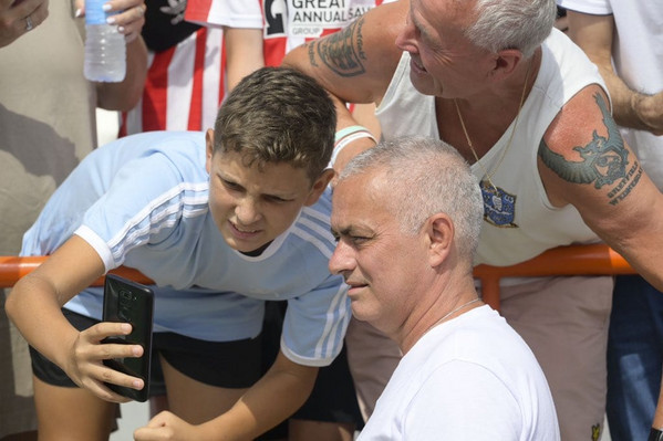 12.00 - L'entusiasmo dei presenti per Mourinho che si ferma per autografi e selfie all'ingresso in campo.