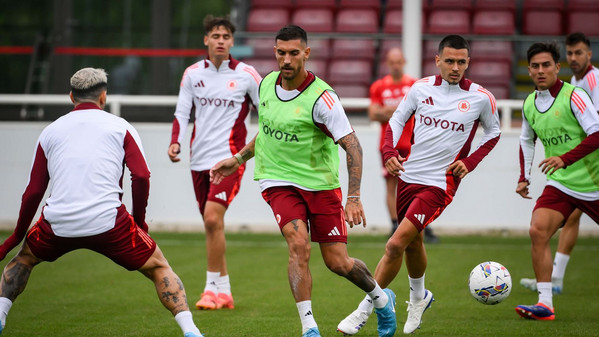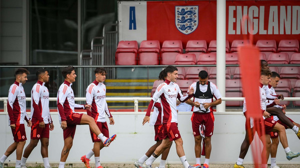 Prosegue la preparazione della Roma in vista dell'inizio della stagione: ieri, dopo l'amichevole con l'Olympiacos, la squadra è volata in Inghilterra per svolgere la seconda parte del ritiro estivo. Dopo una mattinata di riposo, alle 18.00 circa i giallorossi scendono sul campo 6, intitolato a Sir Bobby Charlton, del St. George's Park per il primo allenamento. Daniele De Rossi ha riabbracciato anche Leandro Paredes, rientrato dopo la vittoria della Copa America con l'Argentina e le successive vacanze. Nel pomeriggio la squadra si è allenata a circa 20 gradi: tutti in gruppo, tranne Paredes e Baldanzi, il primo appena rientrato e il secondo che ha iniziato a parte e poi si è aggregato. Tra martedì e mercoledì mattina l'arrivo di Dovbyk e Shomurodov.