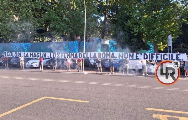 Allo Stadio Tre Fontane va in scena l’amichevole tra Roma e Cannes e si tratta del primo test “casalingo” dei giallorossi. Il match è stato aperto ai tifosi e alcuni di loro hanno esposto uno striscione all'esterno dell'impianto con un chiaro messaggio alla società: "I colori, la maglia, lo stemma della Roma... Non è difficile".
