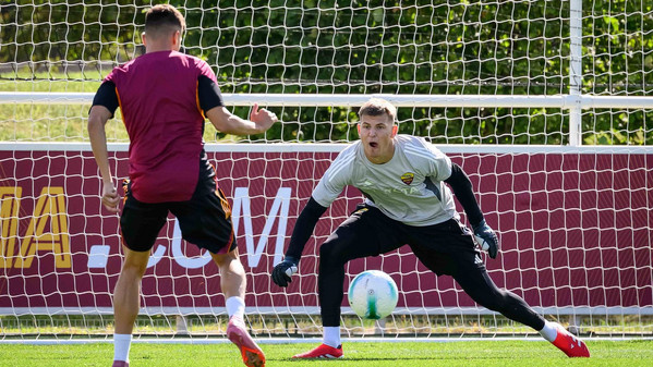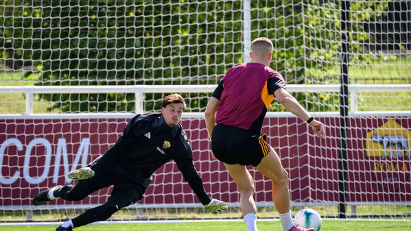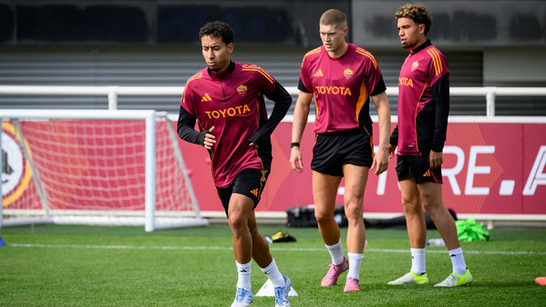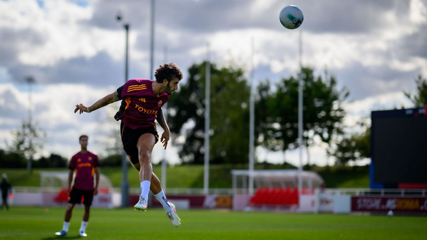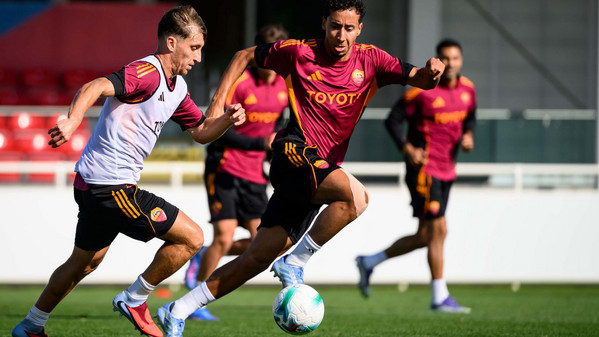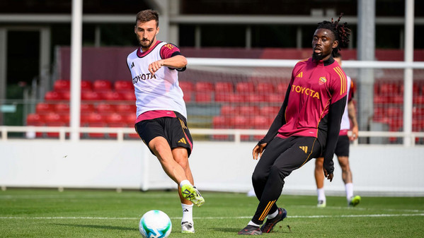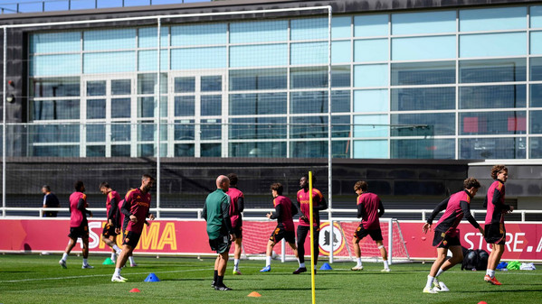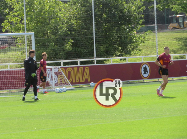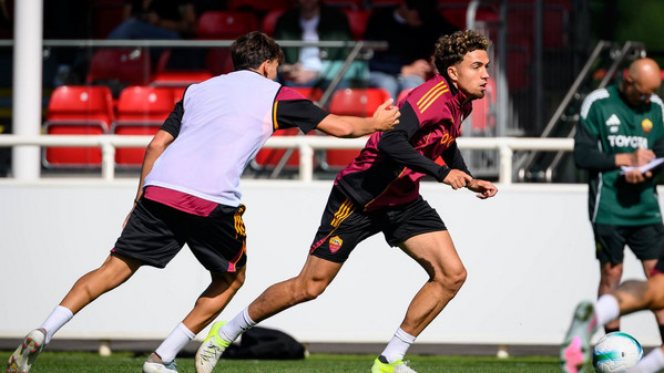 La sessione continua con una partitella a campo ridotto dieci contro dieci: da una parte la squadra in bianco con Zelezny, Rensch, Celik, Mancini, Angelino, Cristante, Pisilli, Baldanzi, Dovbyk ed El Shaarawy; a sfidarli i 'rossi' con Svilar, Ghilardi (impiegato come laterale destro), Kumbulla, Hermoso, Reale, El Aynaoui, Koné, Salaheddine, Romano e Cherubini.