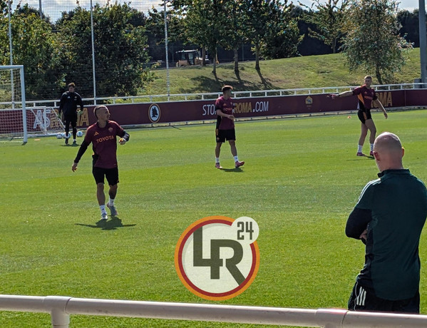 In una prima fase il tecnico ha schierato una formazione con Ghilardi e Hermoso a difendere, Rensch, Koné, El Aynaoui e Angelino a centrocampo e il tridente offensivo composto da Cherubini, El Shaarawy e Dovbyk. Tra i pali si sono alternati Svilar e Zelezny, mentre il resto dei giocatori non coinvolti nell'esercitazione era impegnato in un torello.