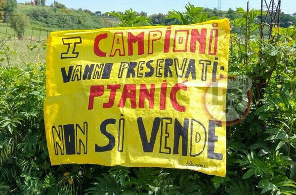 In seguito alle voci circa una possibile partenza di Miralem Pjanic destinazione Bayern Monaco, i tifosi giallorossi questa mattina hanno espresso la loro opinione esponendo uno striscione fuori i cancelli del Fulvio Bernardini di Trigoria che recita: "“I campioni vanno preservati: Pjanic non si vende”.