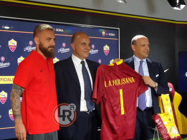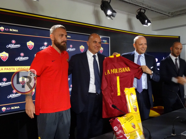 Prende la parola Baldissoni: "E’ un piacere essere qui, non soltanto perché una nuova società entra nel gruppo dei partner che ci accompagnano, ma si tratta di una società che mi fa piacere presentare. Noi come Roma puntiamo all’eccellenza, è un piacere accompagnarci con un’eccellenza del proprio settore come La Molisana. La Roma ha investito tanto per raggiungere nuovi orizzonti, pensiamo di essere una società innovativa e La Molisana è molto innovativa. Parliamo di Italia poi, noi lavoriamo in un business globale, si rivolge ad un mondo sempre più in espansione, ci sforziamo di parlare col mondo e ci associamo a brand internazionali, ma è ancora più un orgoglio poter scegliere un’eccellenza italiana tra i nostri partner. La Roma, che sta per partire per gli USA, si considera un ambasciatore dell’Italia all’estero, non si può non dire la stessa cosa per chi produce pasta".