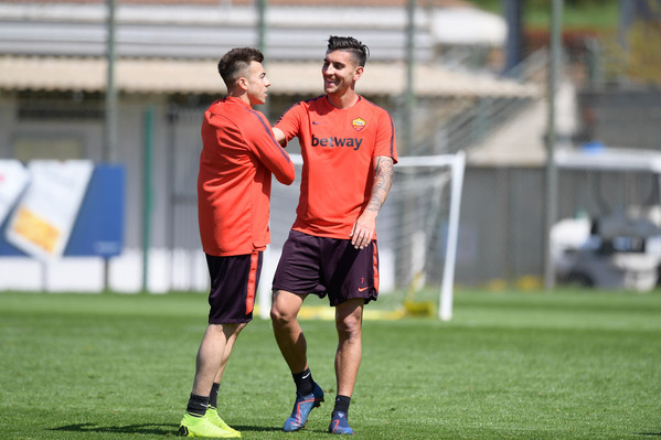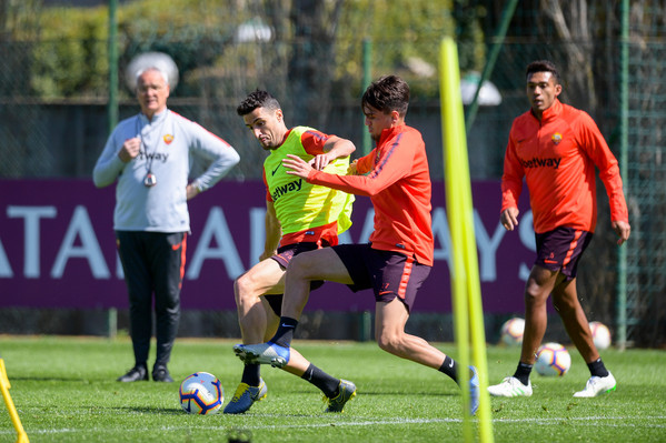 Seduta individuale per Santon, Florenzi, Perotti e Pastore. Karsdorp, invece, svolgerà esami nel pomeriggio per far luce sull'infortunio subìto sabato sera durante Sampdoria-Roma. Assente De Rossi, che ha preso parte all'incontro tra club e arbitri in Lega.