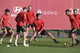 Parte iniziale in gruppo e poi lavoro individuale per Antonio Mirante, che ha subito un infortunio alla mano nella seduta di ieri.