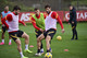 Nella seduta iniziata alle 15, svolta tra palestra e campo, hanno continuato a lavorare in maniera individuale Mirante, Spinazzola e Zaniolo.