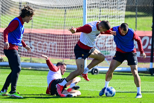 Seduta mattutina a Trigoria dove si attende solo il rientro di Viña, impegnato nella notte con l'Uruguay. José Mourinho ha potuto contare su tutto il gruppo a disposizione, fatta eccezione per Spinazzola, Smalling e Abraham. Per l'attaccante inglese, rimasto vittima di un trauma contusivo nell'ultima sfida dell'Inghilterra, soltanto terapie come già riportato stamattina. I giallorossi, prima di allenarsi, si sono intrattenuti davanti allo schermo istallato a bordocampo per una sessione video. Poi riscaldamento e partitella a campo ridotto sotto gli occhi di mister Mourinho e del suo staff.