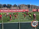 13.05 - La seduta inizia con consuete andature di attivazione muscolare. Predisposti, sul fondo del campo, ostacoli bassi e attrezzatura tipica per gli esercizi di rapidità.