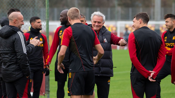 10.35 - La seduta di rifinitura viene aperta da un breve discorso di Mourinho che termina con un applauso della squadra rivolto a Kristensen, poi abbracciato proprio dal tecnico. Spinazzola svolge differenziato sul campo adiacente. Diversi gli assenti nel gruppo: oltre a Pellegrini, non si vedono al lavoro neanche Paredes, Mancini e Cristante. Diversi i Primavera aggregati.