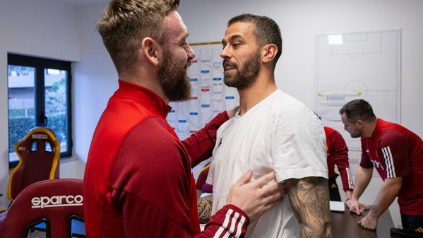 Accolto con un abbraccio: Daniele De Rossi torna a Trigoria, al "Fulvio Bernardini", da allenatore della Roma dopo l'esonero di José Mourinho, annunciato in mattinata dai Friedkin. De Rossi, che ritrova anche alcuni ex compagni con i quali ha condiviso lo spogliatoio da giocatore, ha salutato abbracciando vari giocatori, da Pellegrini a Bove, al momento del ritorno nel centro sportivo, oltre ad aver incontrato anche Dan e Ryan Friedkin. Gli scatti: