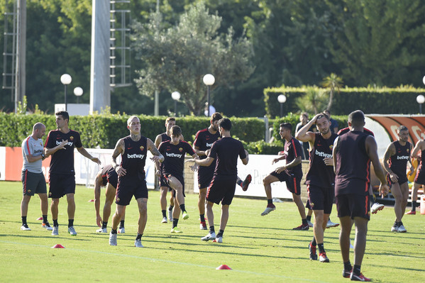 17.45- Attualmente la squadra dopo la seduta video e il lavoro in palestra è scesa in campo. All'inizio classico torello poi l'allenamento si è svolto facendo parte atletica, tattica e finalizzazione. Focus particolare sui calci piazzati. Continua ad allenarsi individualmente Diego Perotti, alle prese con un problema alla caviglia che già gli ha fatto disertare la partita di Torino di domenica scorsa. Il giocatore argentino, così come Luca Pellegrini stanno comunque meglio e dovrebbero tornare in gruppo domani o al massimo domenica.
