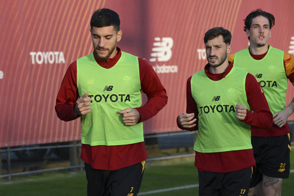/p>Durante le esercitazioni svolte oggi il gruppo di giocatori con il fratino verde era composto da Mancini, Celik, Vina, Camara, Pellegrini, Zaniolo, Dybala, Belotti e Majchrzak; in rosso Kumbulla, Ibanez, Zalewski, Spinazzola, Cristante, Shomurodov e Volpato; in blu Solbakken, El Shaarawy, Smalling, Matic, Abraham, Karsdorp, Tahirovic e Bove.