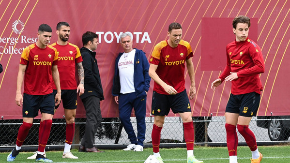 All'indomani del pareggio per 0-0 in casa del Bologna nella 35esima giornata di campionato, la Roma è tornata subito al lavoro al "Fulvio Bernardini" di Trigoria: giovedì i giallorossi sono attesi alla BayArena dal Bayer Leverkusen nel ritorno delle semifinali di Europa League (1-0 per la Roma nella gara d'andata con gol di Bove). Chi non ha giocato ieri al Dall'Ara o è subentrato nel corso della sfida ha lavorato in campo sotto gli occhi anche del General Manager Tiago Pinto, hanno lavorato a parte Paulo Dybala e Chris Smalling. Gli scatti della seduta odierna: