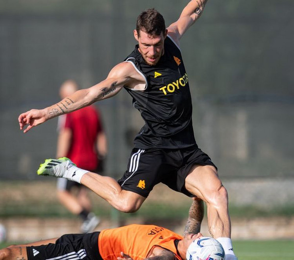 Tra i sorrisi la Roma continua a lavorare al "Fulvio Bernardini" di Trigoria prima del test, il secondo stagionale, con il Latina in programma venerdì mattina e la partenza per il Portogallo per svolgere la seconda parte di preparazione estiva in Algarve. I giallorossi oggi pomeriggio si sono allenati agli ordini di José Mourinho che, come si vede nel video pubblicato dal club sui social, sorride con Paulo Dybala e Nemanja Matic, che abbraccia anche il tecnico. Anche il terzino classe 2004 Falasca oggi in gruppo.