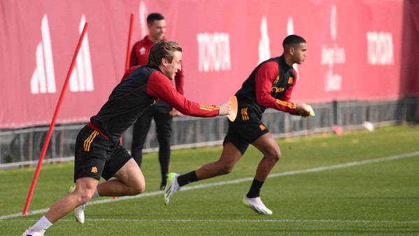 Questa mattina la Roma ha svolto l'ultimo allenamento al centro sportivo 'Fulvio Bernardini' di Trigoria prima della trasferta di Salerno, match valido per la ventiduesima giornata di Serie A e in programma domani alle ore 20:45. Buone notizie per Daniele De Rossi: Paulo Dybala e Gianluca Mancini si sono allenati nuovamente con il resto del gruppo, motivo per cui aumentano sensibilmente le chance di vederli in campo dal 1' contro la Salernitana. Presenti alla seduta anche Dean Huijsen (che ha smaltito il sovraccarico muscolare) e Houssem Aouar (tornato dalla Coppa d'Africa).